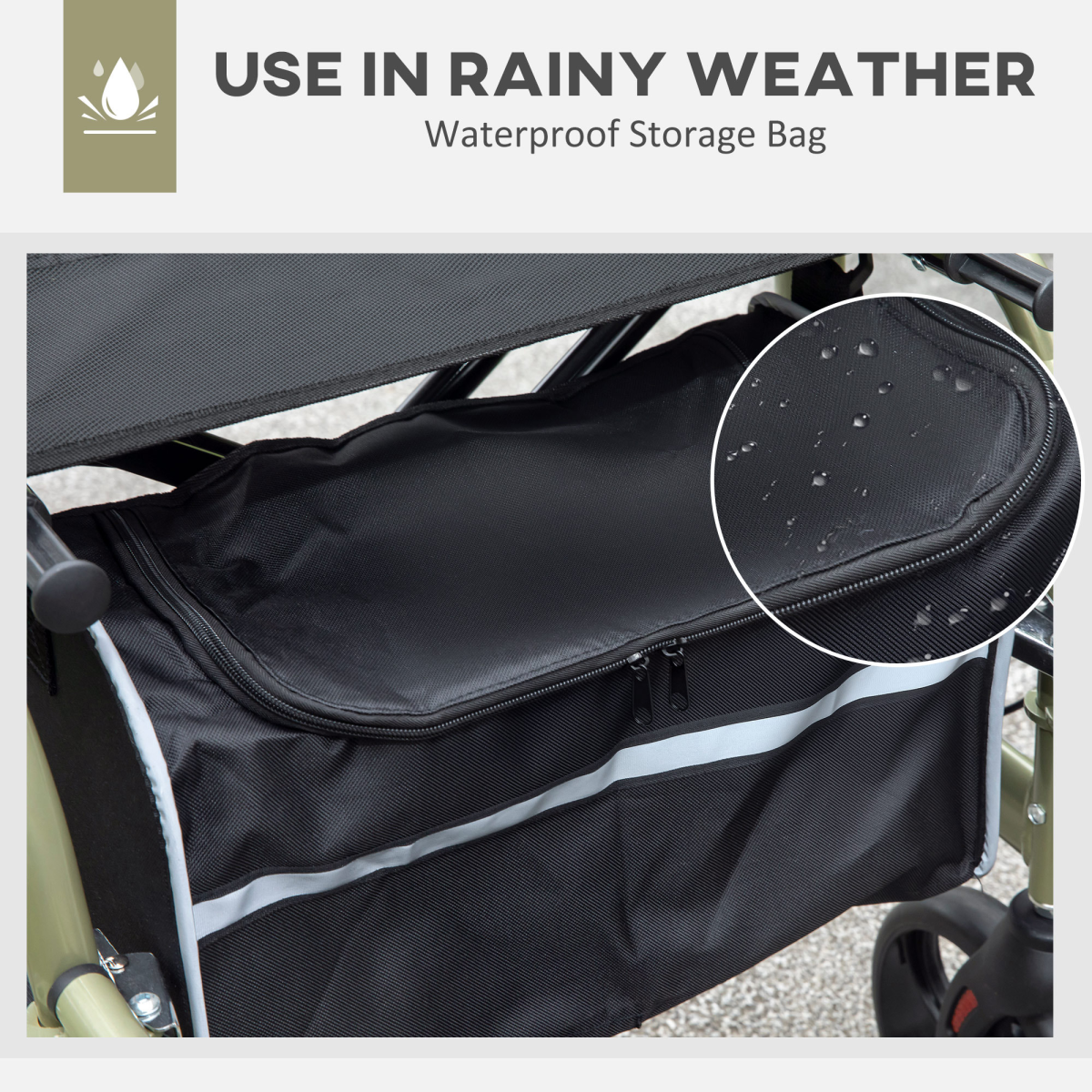 A spacious waterproof storage bag keeps essentials secure in all weather, and the foldable, tool-free design makes storage and transport effortless. Certified with UKCA safety standards, this mobility aid is ideal for both daily use and travel.