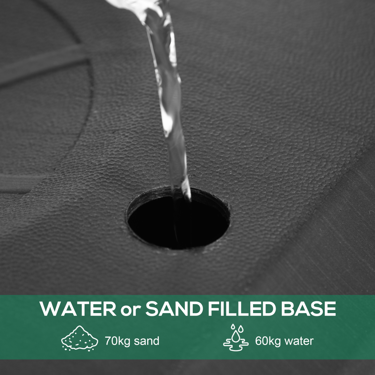 - Base can be filled with 60kg water or 70kg sand for secure stability