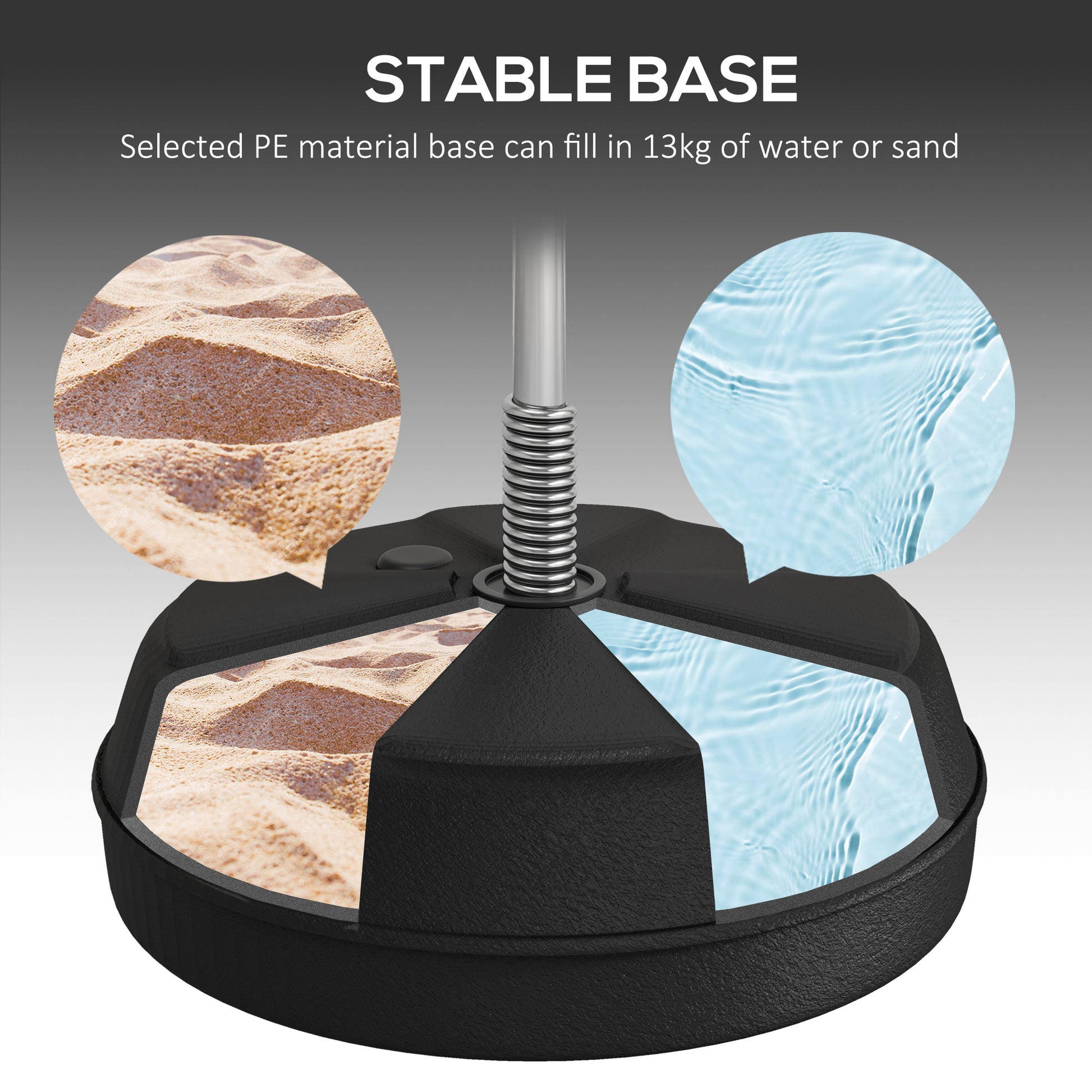 - Stable Weighted Base: Fill with up to 13kg water or sand for secure use.