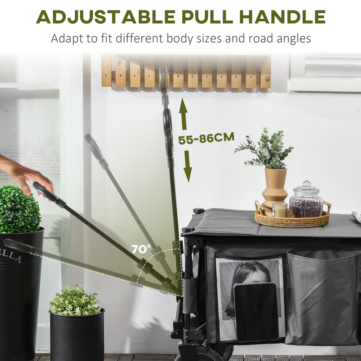 Folding Garden Trolley – Collapsible Camping Wagon with Steel Frame & Cover, Dark Grey