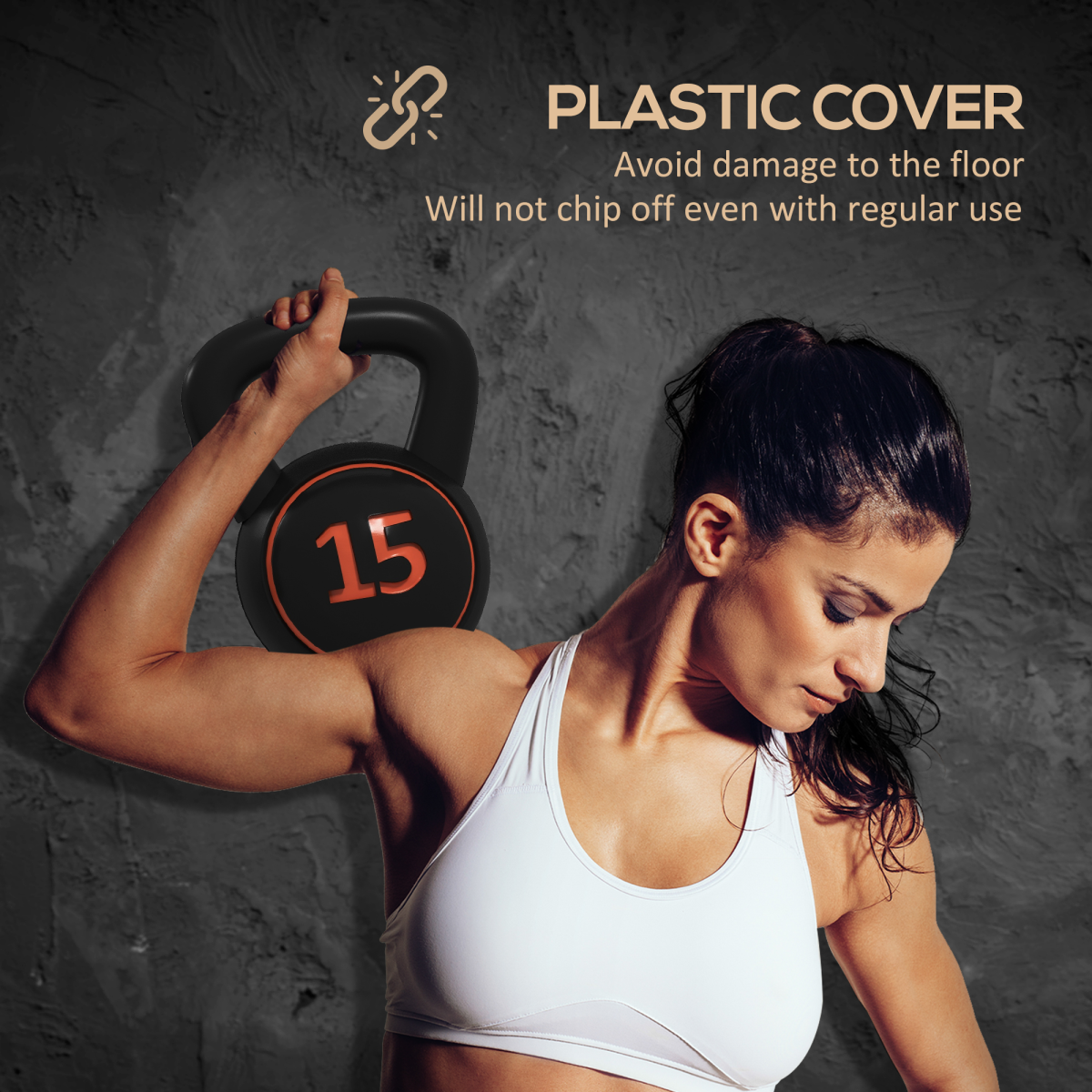 SPORTNOW 3-Piece Kettlebell Set with Storage Tray – 5lb, 10lb & 15lb Weights (2.2kg, 4.5kg, 6.8kg)