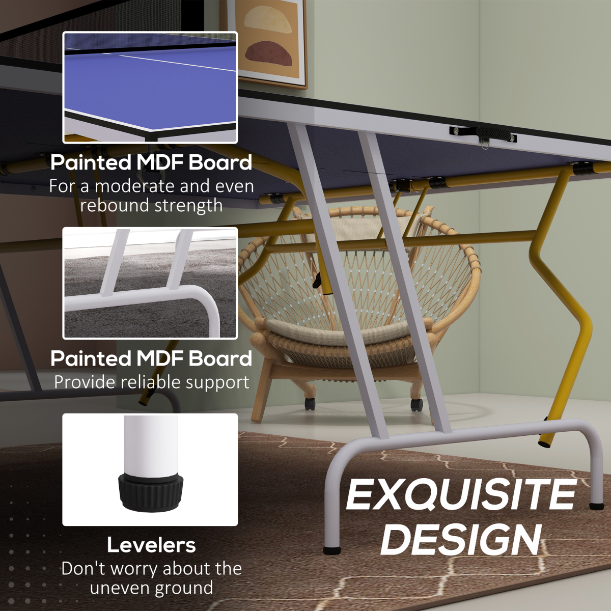 - Multi-Use Table – Remove the net and use as a dining, study, or gaming table.