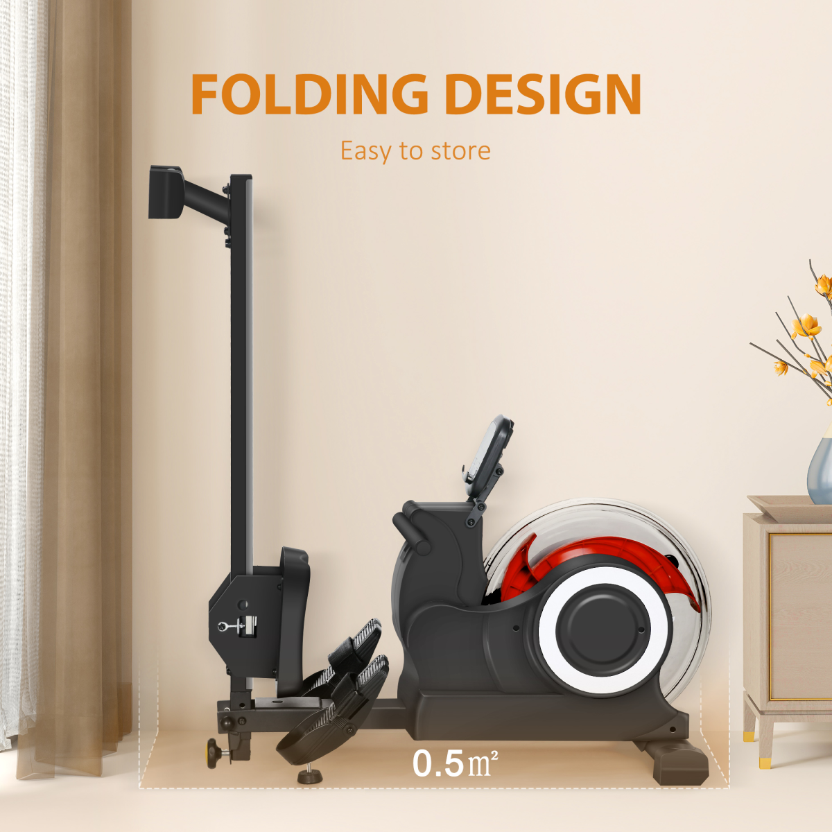 SPORTNOW Foldable Water Rowing Machine with Wheels & LCD Display – Black