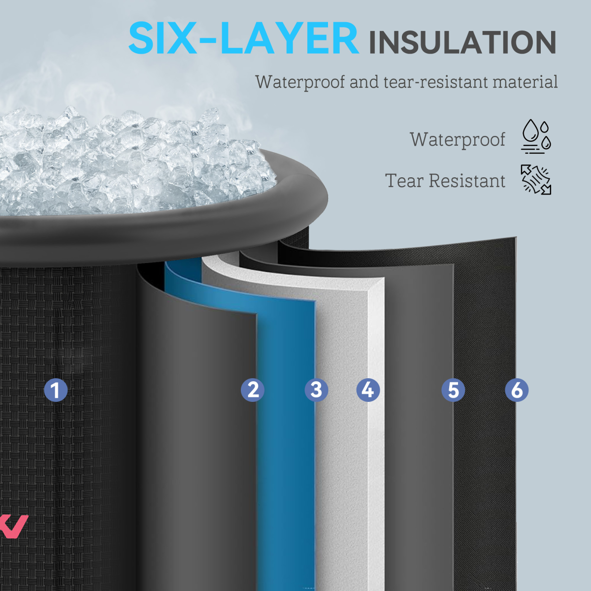 Experience ultimate recovery with this SPORTNOW 300L portable ice bath tub, designed for cold water therapy and outdoor use. The stylish black rattan effect exterior adds a modern touch, while the six-layer insulation helps maintain water temperature for longer.